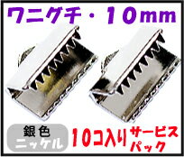 【アクセサリーパーツ・金具】 紐止め(ワニグチ リボン留め金具)・10mm 銀色シルバーカラー 10コ入りのサービスパック