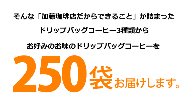 内容量:1袋/8g×250袋“簡単でも美味しい!”Qグレード珈琲豆を数多く取り扱う加藤珈琲店だから作れるドリップバッグコーヒーからお好みのお味を250杯分お届けします。