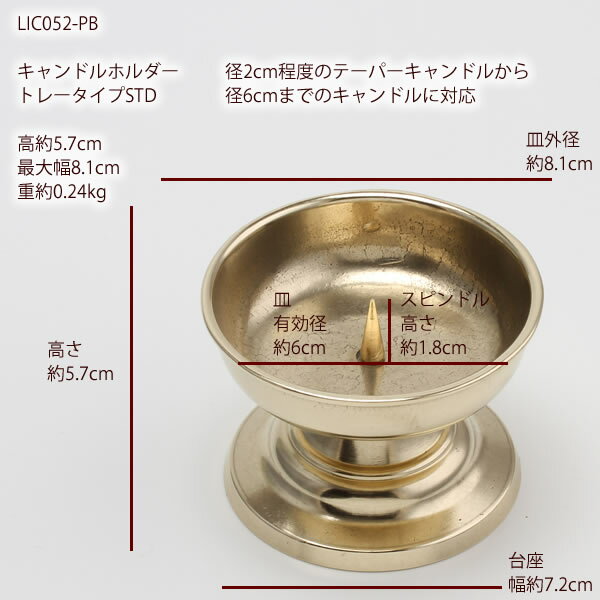 燭台 トレータイプ 深皿 PBキャンドルスタンド フォルダー【すぐ使えるキャンドルおまけ付】【キャンドルなし選択可能】高級燭台 イタリア製真鍮雑貨・ローソク立てピラーキャンドル対応深皿タイプLIC052-PB【RCP】