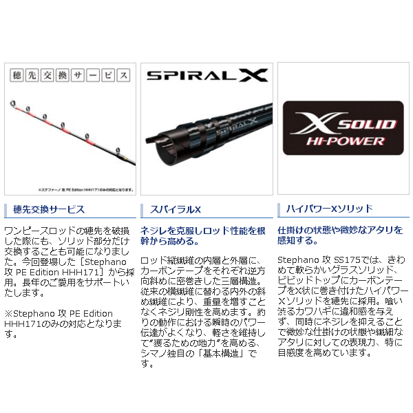 スパイラルX採用はもちろん、ハイパワーXティップ、フィッティングサポートCI4+リールシートなど、シマノが誇る数々のテクノロジーを集約。