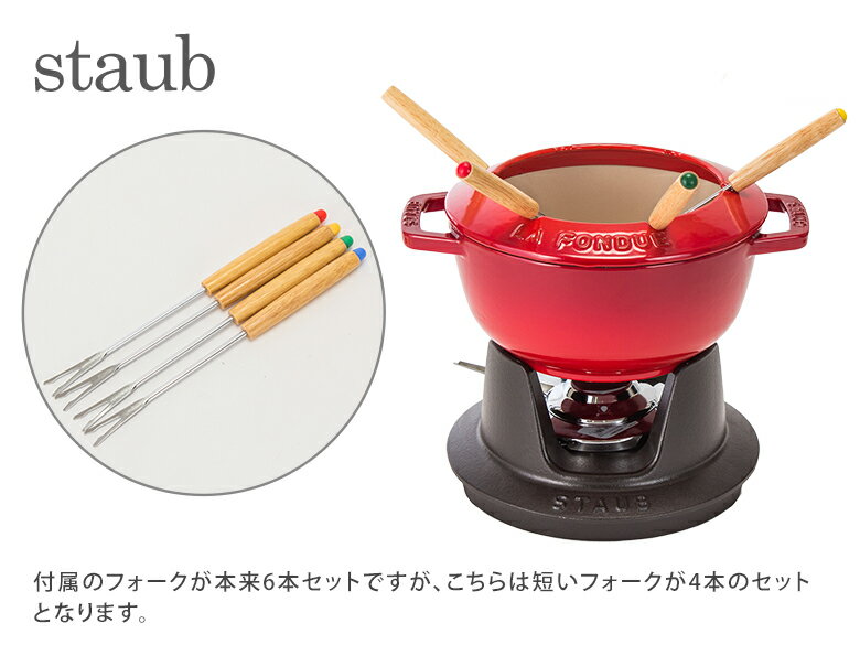 商品名ストウブ【Staub】フォンデュセット 18cm 40511-97 カラーチェリー サイズ約直径18×高さ10cm、長さ24cm(取っ手含む)容量:1.6L重量:約2.3kg 素材ホーロー 商品について【フォンデュセット】シンプルでかわいらしいデザインのフォンデュ鍋です。